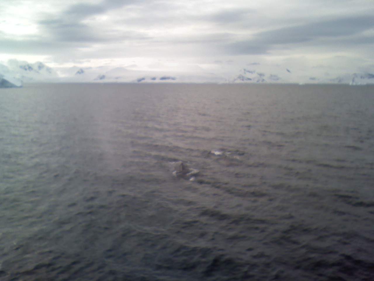 Bak on the ship there was no recap before dinner as three whales playing in the water just waters from the ship captured everyones attention. We followed them for about an hour, everyone running from bow to stern as the whales moved about in the seas. This went on until dinner was served.